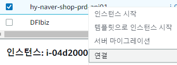 원하는 인스턴스 선택 > 우측마우스 > 연결 클릭 > Session Manager에서 연결 클릭